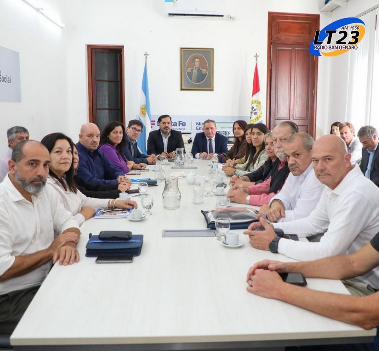 Luego, en la sede de la cartera laboral, se llevó a cabo la reunión con los gremios docentes de la que participaron Olivares y Báscolo; el ministro de Educación, José Goity; y los secretarios generales de Amsafe, Rodrigo Alonso, y de Sadop, Pedo Bayugar.