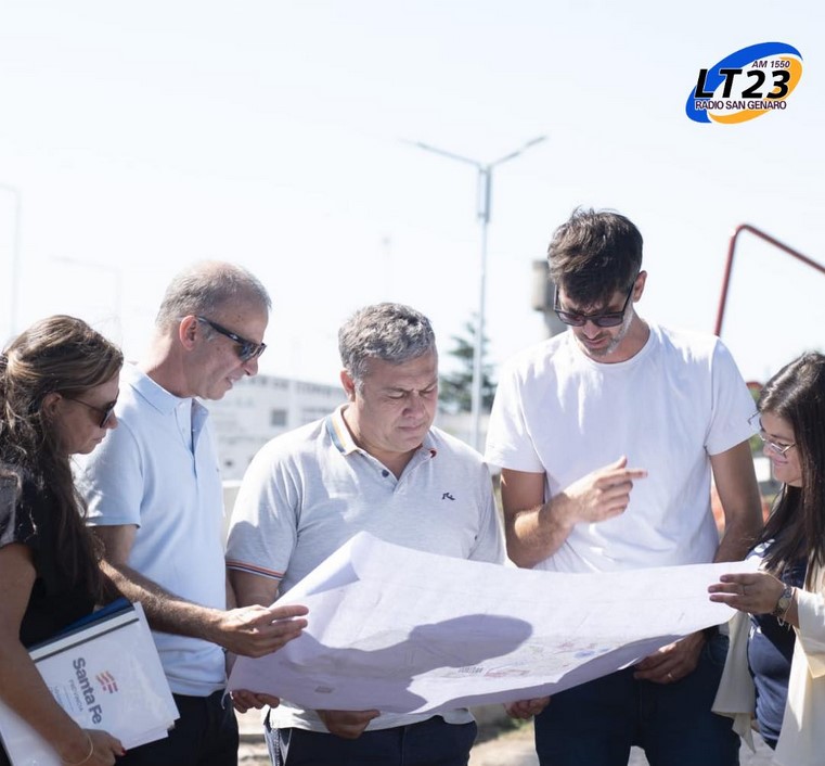 El Presidente Comunal, Antonio Fiorenza, junto a la Vicepresidente Comunal, Fany Lis Wohlk, recibieron a funcionarios provinciales representantes del Ministerio de Obras Públicas que recorrieron la obra del Parque Urbano, para verificar los avances y detalles finales del mismo.