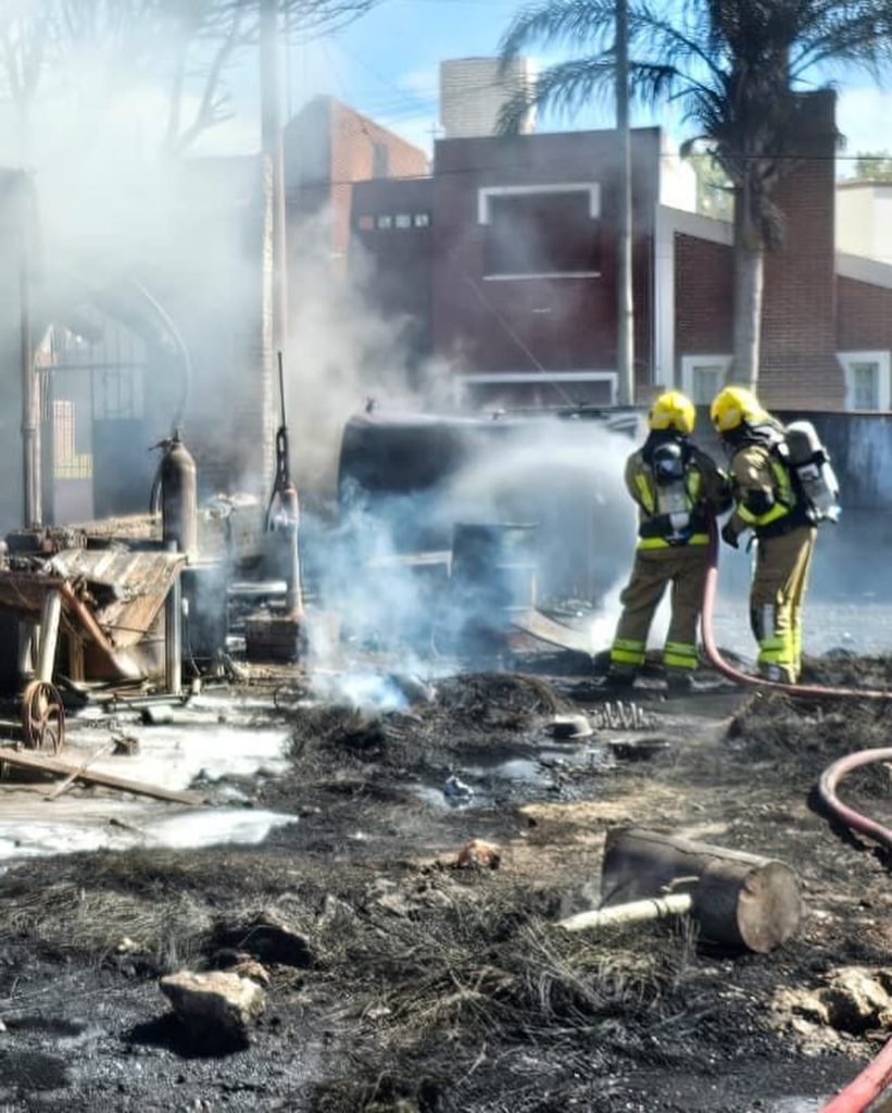 El hecho se produjo en el domicilio de un transportista, un galpón utilizado para guardar camiones. Según los primeros testimonios, una chispa generada durante trabajos con una moladora desencadenaron el incendio, que se propagó rápidamente y alcanzó la vía pública, afectando vehículos y viviendas cercanas.