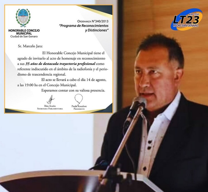 El próximo 14 de agosto, el Concejo Municipal de San Genaro entregará un reconocimiento a Marcelo Jara por sus 35 años de destacada trayectoria profesional.