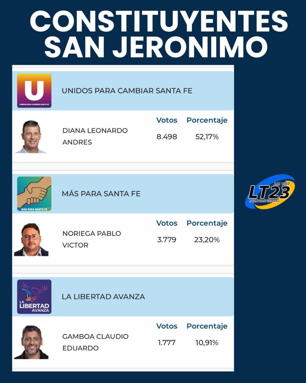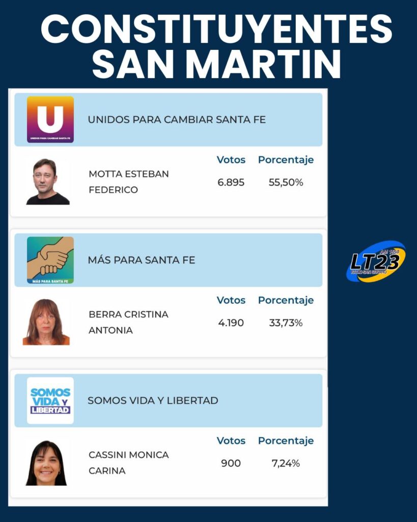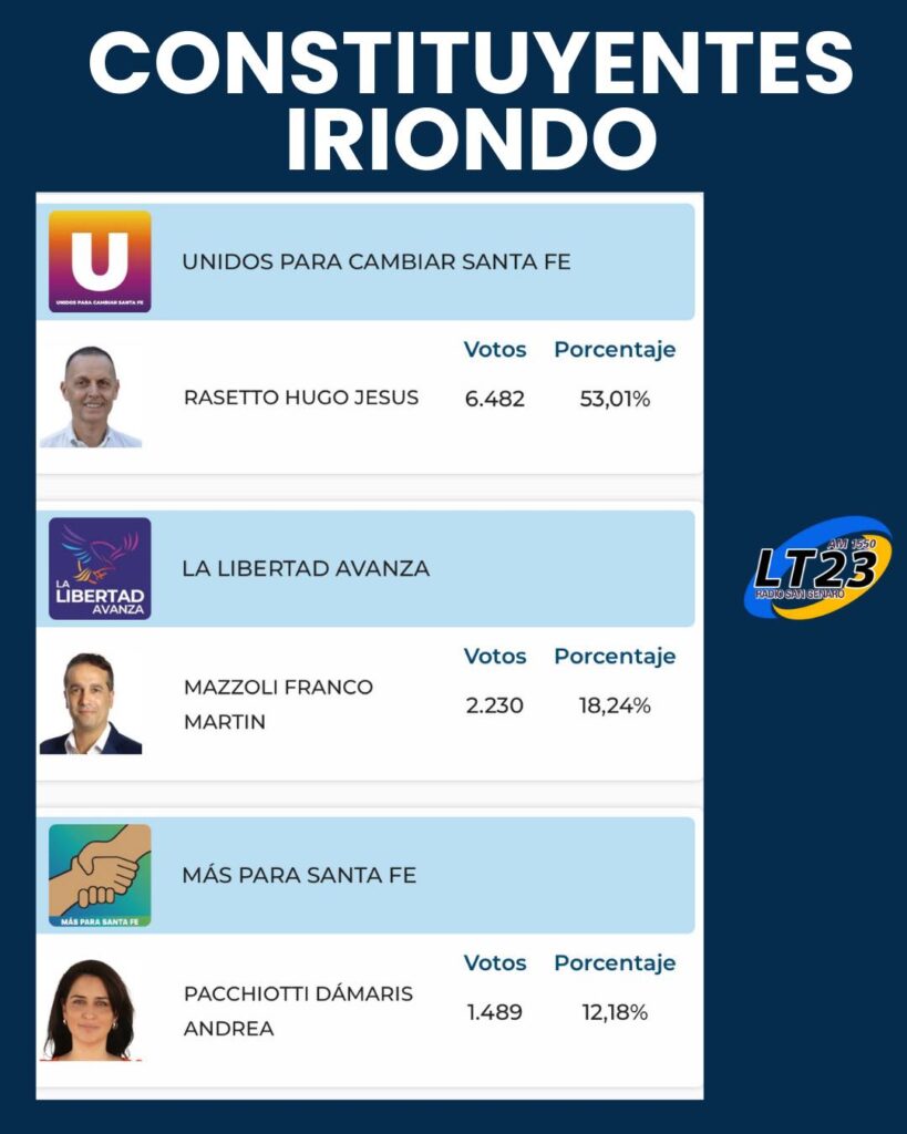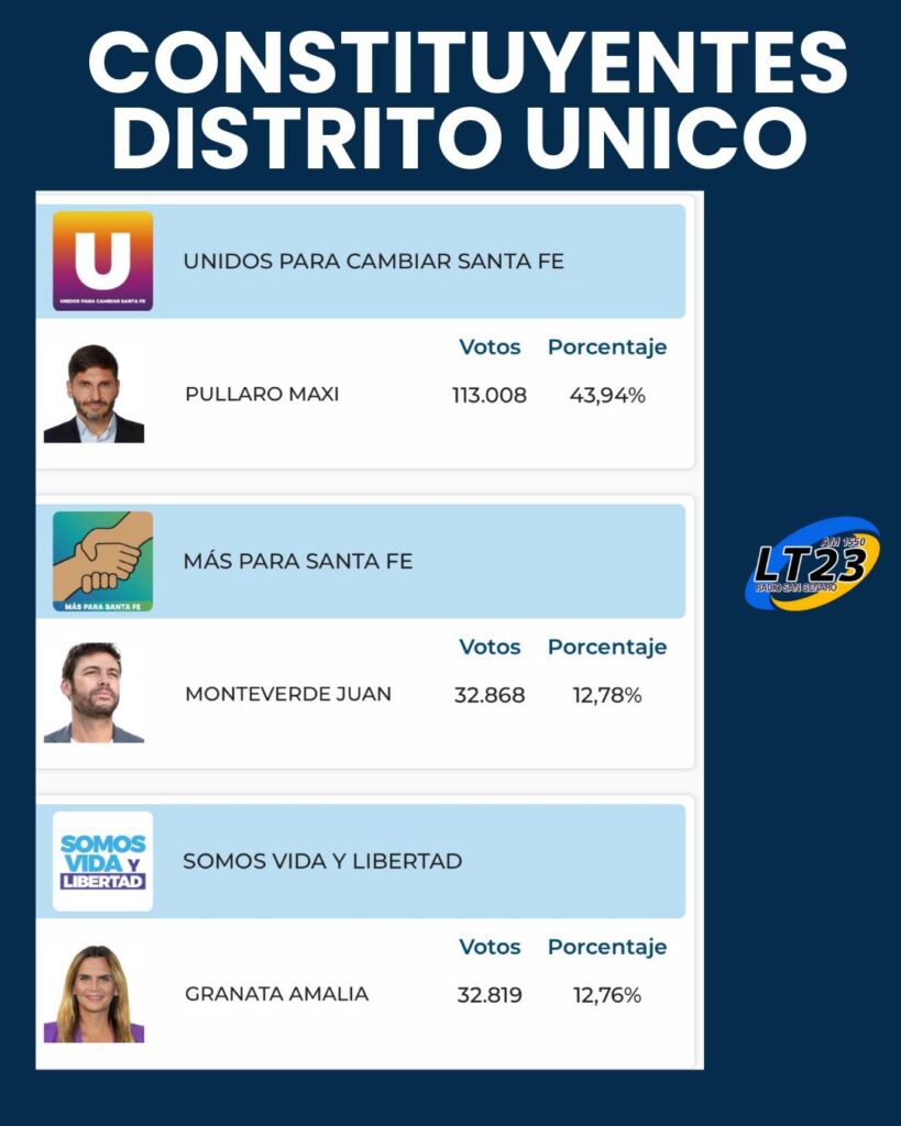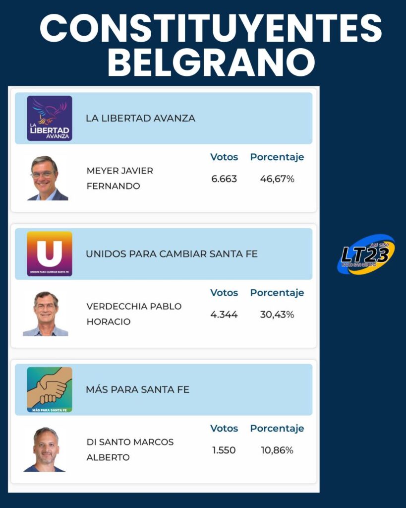 Distrito Único, Dpto San Jerónimo, Iriondo, San Martín y Belgrano.