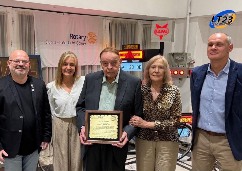 En una emotiva cena de camaradería, Rotary Club de Cañada de Gómez reconoció con la distinción “Rueda de Oro” a la empresa Juan J. Baiml S.A., como homenaje a su destacada trayectoria y valioso aporte al desarrollo económico y social de nuestra ciudad.