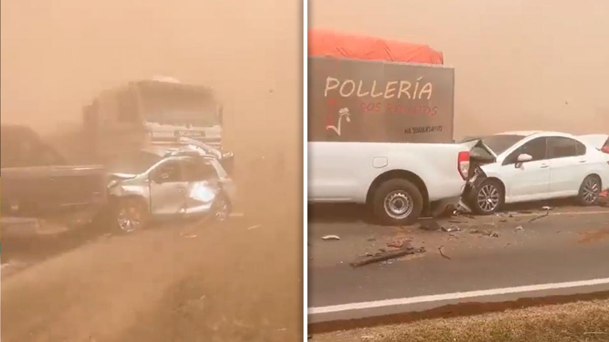 Minutos después del mediodía de este domingo se registró un múltiple choque en el kilómetro 108 de la Ruta Nacional 34, entre Centeno y Las Bandurrias, donde tres camiones y dos vehículos menores se vieron involucrados debido a la baja visibilidad en la zona por viento y tierra.