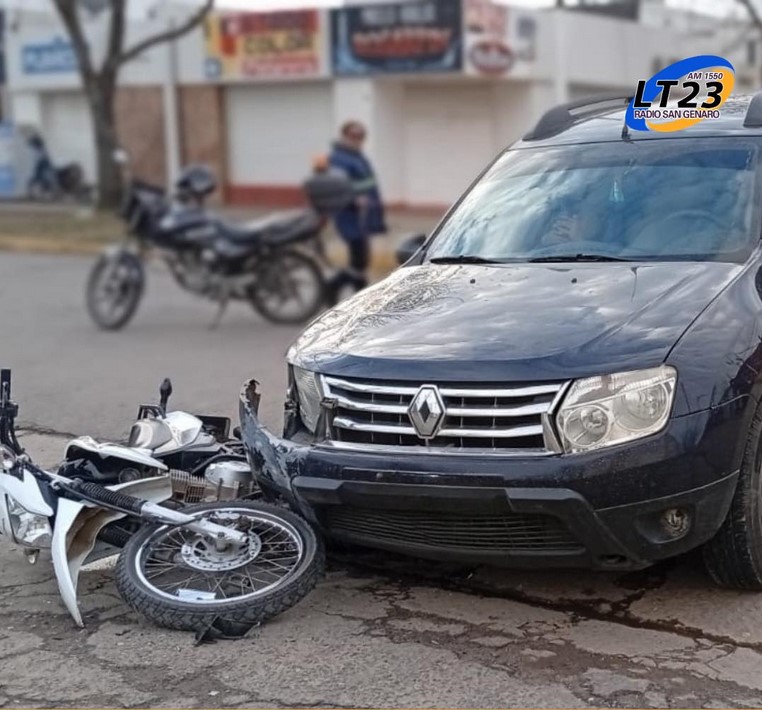 Salida de bomberos: accidente de tránsito en la intervención de las calles Belgrano y Corrientes entre un auto y una moto.