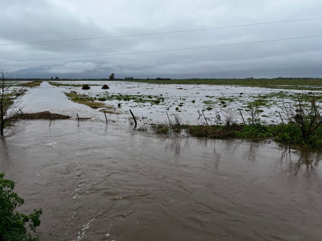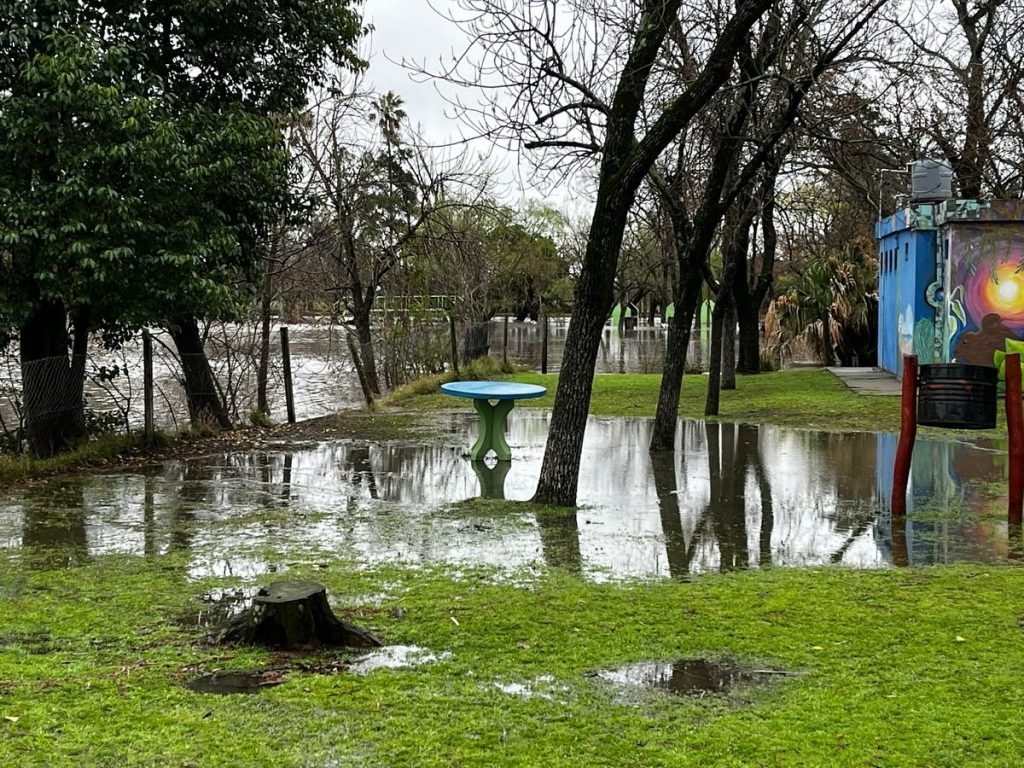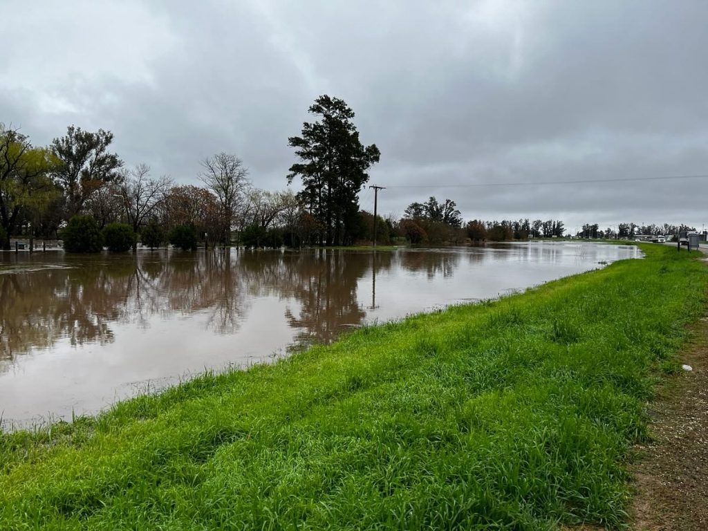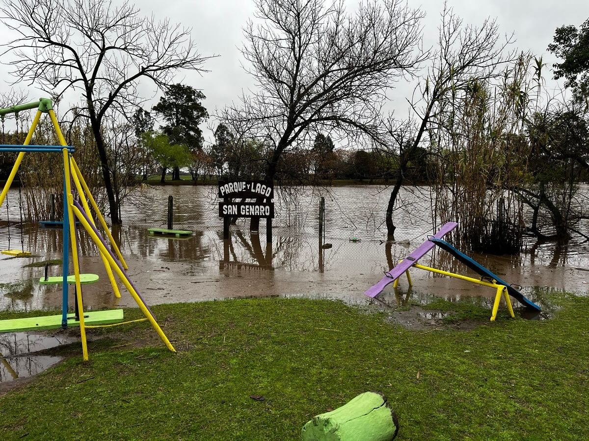 Al mediodía del domingo, luego de las intensas lluvias, así se encontraba la zona de cruce de Ruta 34 y 65, Parque Lago San Genaro y Canal San Genaro en acceso sur.