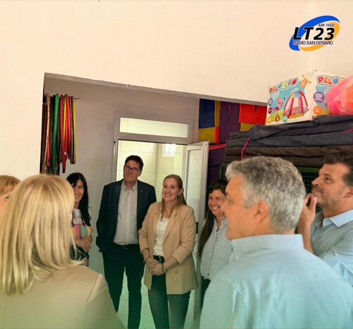 El Intendente de la ciudad Gaston Marconcini, junto a la Vicegobernadora Gisela Scaglia; el Ministro de Educación, José Goity; la Ministra de Igualdad y Desarrollo Humano, Victoria Tejeda; el Senador Departamental, Leo Diana; las directivas del Jardín de Infantes Nucleado N.º 111 “Trigales”, Mariela Bartolelli y Analía Coiset; el gabinete municipal, inauguraron los nuevos baños en el SUM de dicha institución.