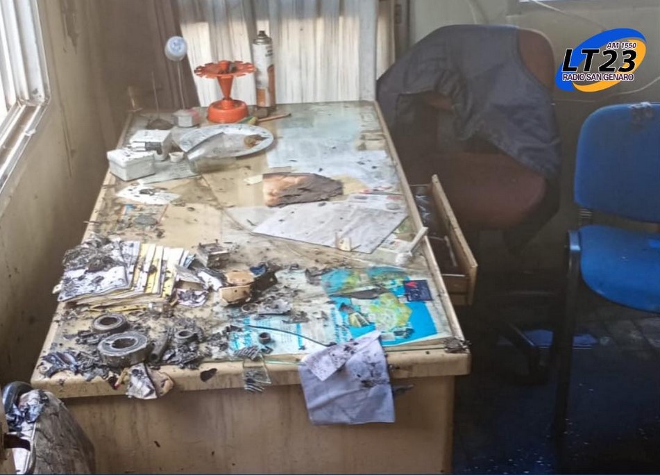 Hace instantes se produjo un incendio en la oficina de la Cooperativa 19 setiembre, en calle Pte Perón y 25 de mayo. El mismo se originó por desperfecto eléctrico.