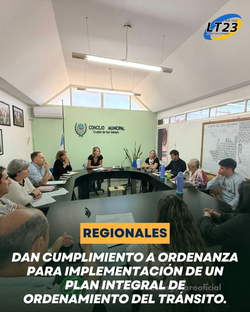 Durante la reunión estuvieron presentes los coordinadores del Área de Tránsito, Concejales, el Secretario de Obras Públicas, la Secretaria de Desarrollo Social, la Jueza de Faltas, representantes de los Bomberos Voluntarios de San Genaro y la Secretaria de Gobierno.