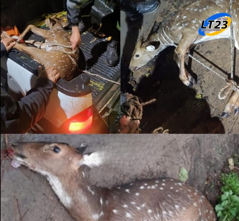 SANTO TOMÉ: DOS CIERVO AXIS APARECIERON EN LA COSTANERA, UNO MURIÓ ATROPELLADO Y EL OTRO FUE RESGUARDADO POR LA POLICÍA