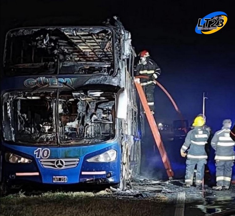 Bomberos Voluntarios de Cañada Rosquín sofocaron las llamas de un colectivo de la empresa Gral. Güemes, entre Cañada Rosquín y Pueblo Casas.