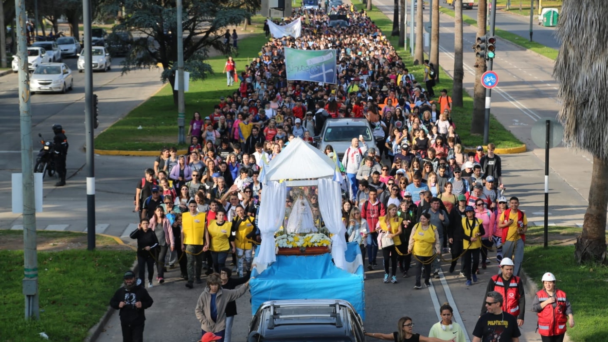 El trayecto sigue por Av. Belgrano, donde se integra la Carroza con la imagen de la Virgen. Luego se continúa por el túnel hacia Av. Wheelwright, Av. Brig. Gral. E. López, Vélez Sarsfield y Av. Alberdi hasta Bv. Rondeau, siempre por los carriles derechos habilitados.
