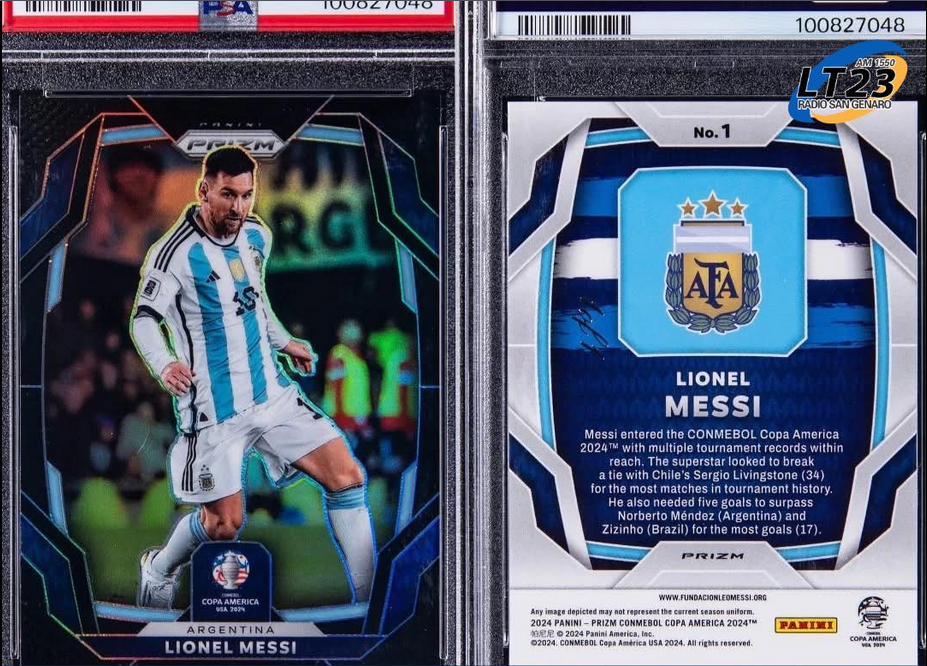 “Esta es una de las mejores cartas de uno de los mejores jugadores de todos los tiempos: la Prizm de Panini 2024, Copa América, Black Prizm 1 of 1″, señaló el anuncio.