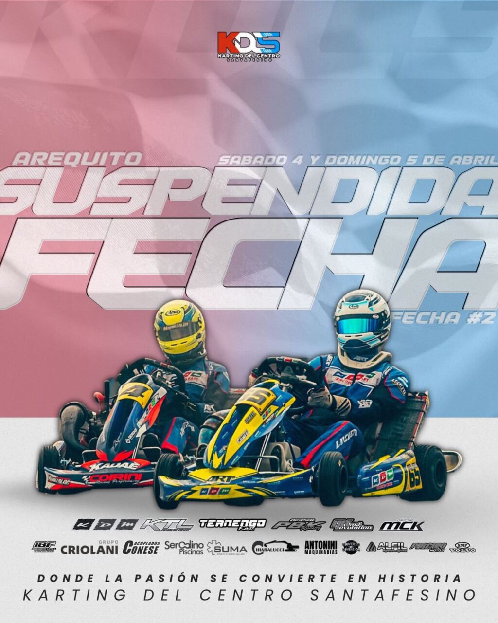 La Categoría KDC Santafesino y el Circuito 9 de Julio de Arequito anunciaron la suspensión de la fecha programada debido a condiciones climáticas adversas.