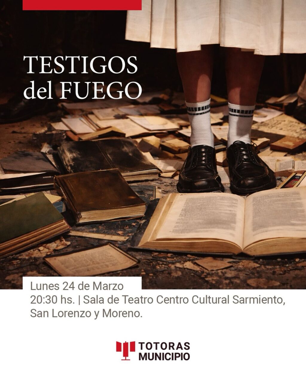 En el marco de los 50 años de la última dictadura cívico militar argentina, el Municipio invita a la comunidad a la presentación de Testigos del Fuego, una obra que pone en escena uno de los aspectos menos visibilizados del terrorismo de Estado: la quema de libros y la censura cultural.