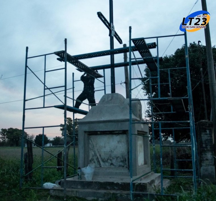 La Cruz de la Colonia de Timbúes comenzó a ser restaurada en su totalidad días atrás en manos del muralista y pintor profesional, Claudio Capone. Este monumento religioso y arquitectónico es uno de los más antiguos que quedan en pie.