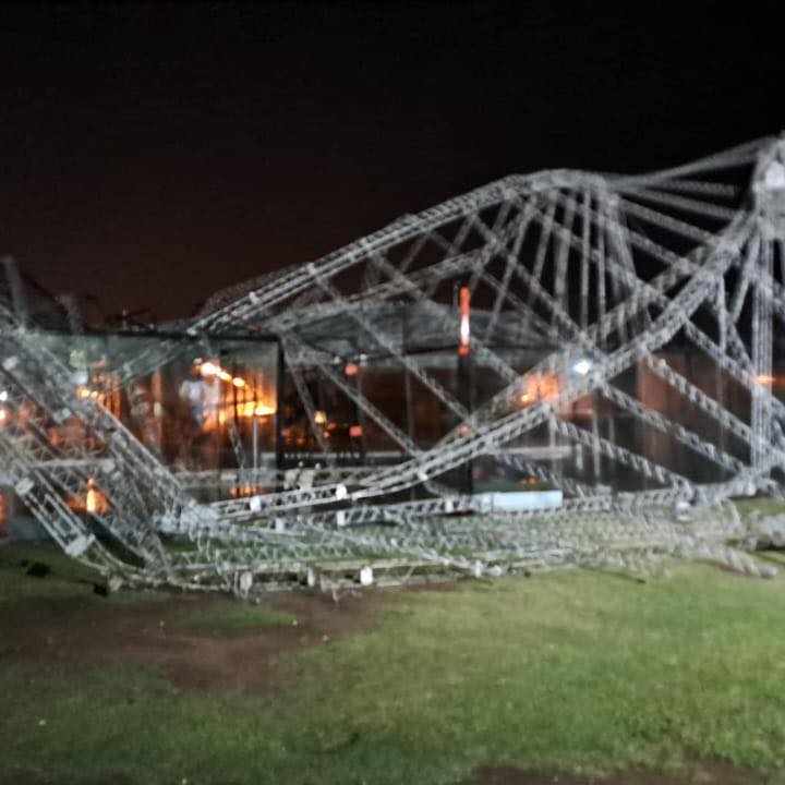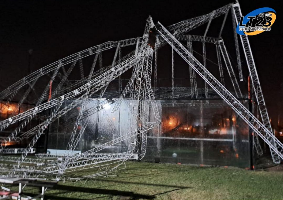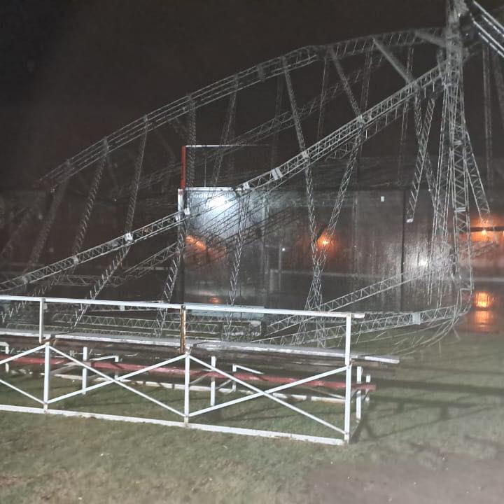 Tinglado del club Huracán de Las Varillas y los destrozos por la tormenta