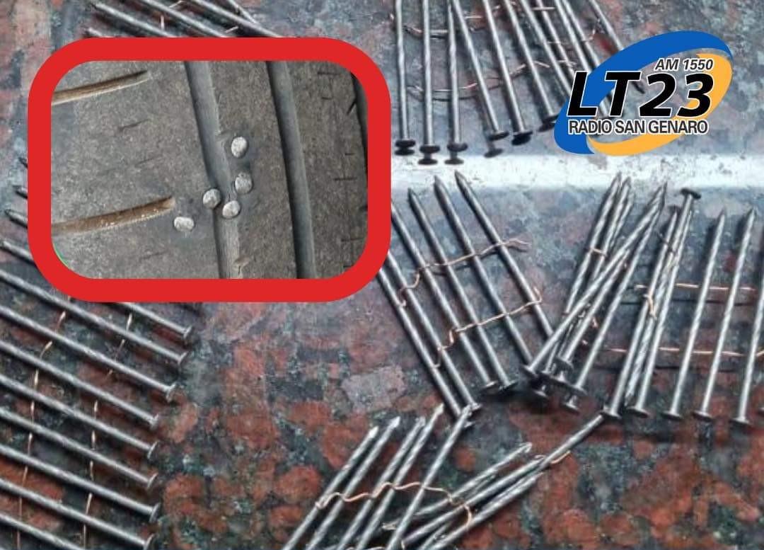 “En ese tramo varios conductores se encontraron con que pinchaban sus neumáticos y al bajarse a controlar las ruedas, notan muchos clavos incrustados en los neumáticos. Clavos de carpintería de unos 5 a 7cm de largo que según comentarios estaban desparramados en varios lugares de este tramo. Y debio al horario que hay mucho tránsito en esa ruta”, informaron desde Bomberos Voluntarios de Tortugas. “Nadie sufrió un accidente.
