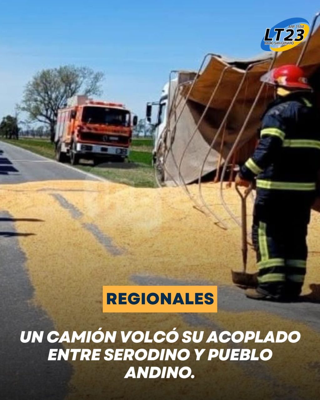 Este mediodía un camión volcó su acoplado cargado de cereal en ruta 91 entre Serodino y Pueblo Andino.