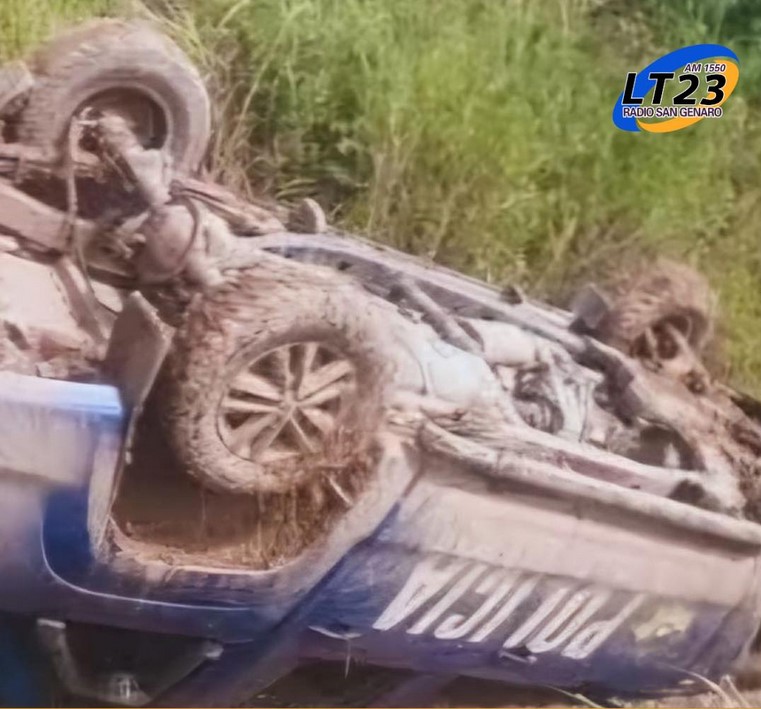 En la mañana del lunes una camioneta policial de la Unidad Regional de San Cristóbal, perteneciente a la Comisaría de Villa Saralegui, sufrió un vuelco sobre Ruta Provincial 2, en cercanías de Petronila.
