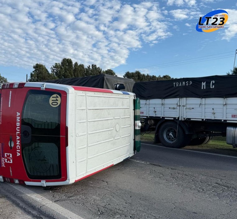 La ambulancia volvia a Rosario, cuando despistó y volcó. Circulaba sin pacientes, el conductor fue asistido y liberada la ruta por Bomberos. Trabajaron el Movil 21 y 23 de Bomberos Totoras. Informó Pablo Zárate