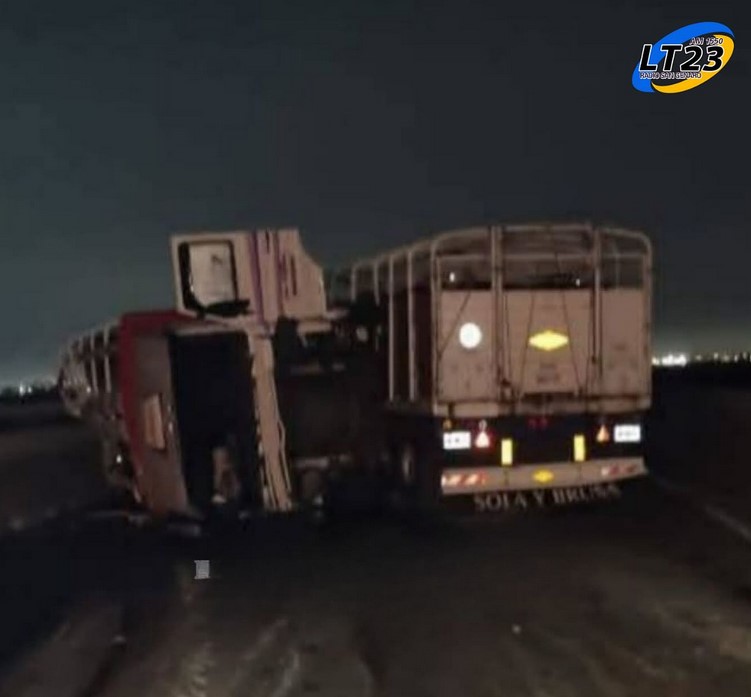 Un camión que transportaba ganado chocó contra otro vehículo. En medio de la confusión, una mujer que se acercó a observar el siniestro fue embestida por un toro. Tuvo que ser trasladada al HECA.