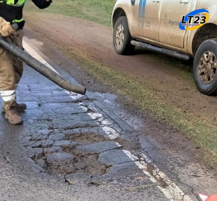 Las tareas de bacheo preventivo son ejecutadas con personal y equipos pertenecientes al campamento Casilda de Vialidad Nacional.