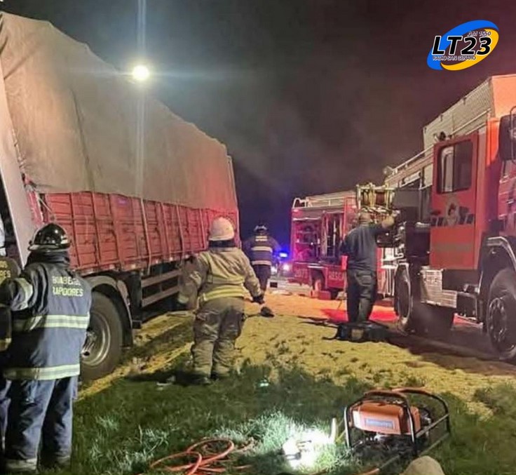 Ambos circulaban en la misma dirección, cuando uno de ellos embistió el acoplado del que iba adelante, quedando con su parte frontal sobre la banquina.